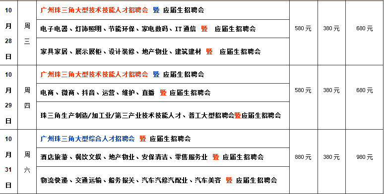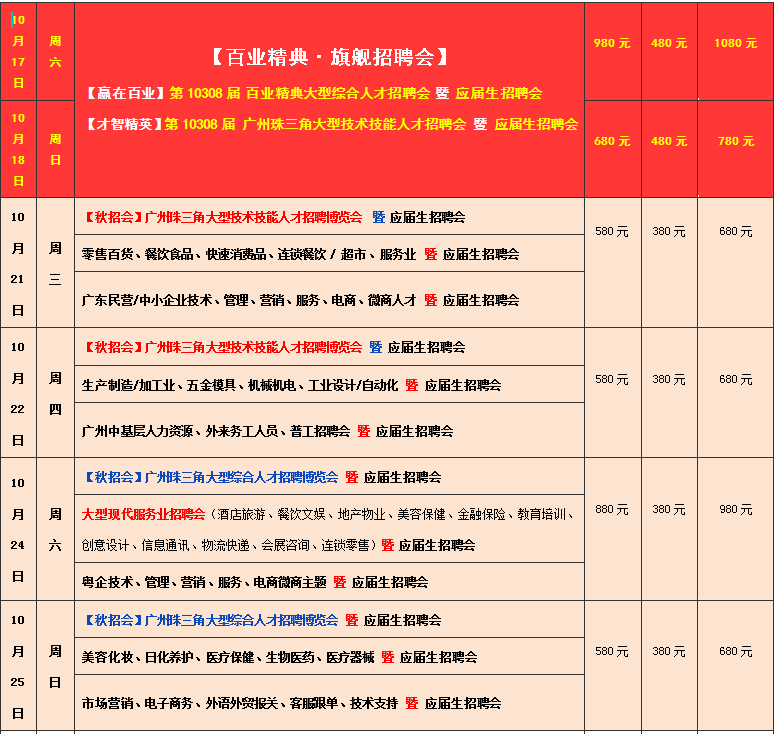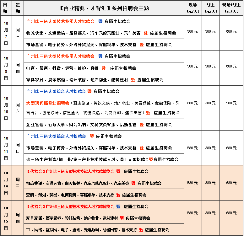 2020年广州百业人才市场10月份招聘会时间安排